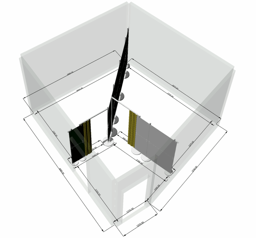 Der vorhandene Raum war verwinkelt, nicht symmetrisch – und es durfte nichts gebohrt oder dauerhaft befestigt werden. Wände, Decken und Böden mussten unangetastet bleiben. Trotzdem sollte eine funktionale Lösung entstehen, die zwei voneinander getrennte Behandlungsbereiche schafft – ruhig, ästhetisch und professionell.